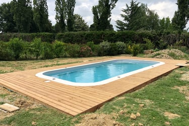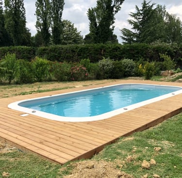Une piscine avec sa terrasse bois a Mont de Marsan