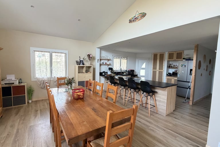Rénovation salle a manger salon cuisine a Aire sur l'Adour. Dépose cheminée, ouverture d'une partie du mur a droite pour accéder a la cuisine