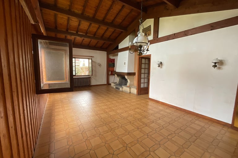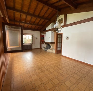 Rénovation salle a manger salon cuisine a Aire sur l'Adour. Dépose cheminée, ouverture d'une partie du mur a droite pour accéder a la cuisine